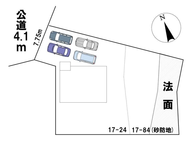 接道 | 北西側(公道)幅 約4.1m 間口 約7.75m |